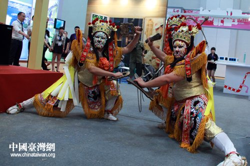 参展的北港朝天宫现场表演台湾传统庙会中最常见的“八家将”。(中国台湾网 王伟 摄)