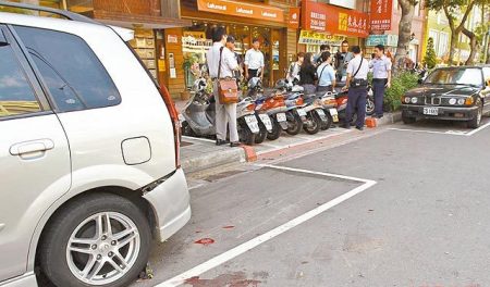 马自达休旅车(左)遭肇事BMW(右)猛烈撞击往前移位,车旁还留有李女的血迹。图片来自网络
