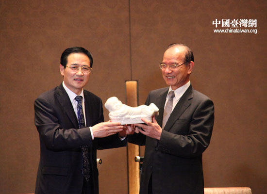 中共河北省委副书记付志方与中国国民党荣副主席林丰正互赠礼品(摄影 中国台湾网 陈宁)