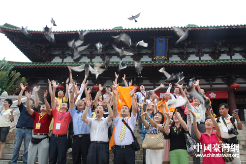 两岸媒体记者共同放飞和平鸽(中国台湾网 赵辉 摄)