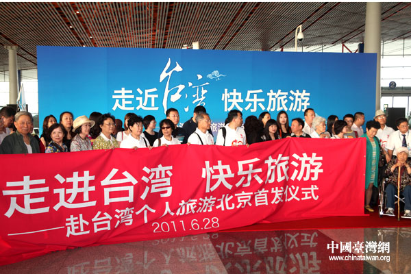 赴台个人游启动首日,第一批61名游客将于今日上午8:30乘坐国航ca185航班自北京起飞,预计中午(28日)之前抵达台北桃园机场。国家旅游局、国台办、北京市旅游局、台旅会等部门在首都机场为首日首批赴台游客举行了简短的欢送仪式。