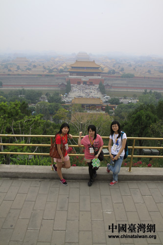 首义之旅的两岸大学生参观北京北京景山公园,在景山山顶鸟瞰宏伟故宫(中国台湾网 赵婧 摄)
