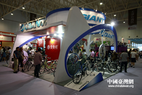 作为天津台商区的主要成员之一,捷安特带来了最新的产品,吸引了不少目光。(中国台湾网 马迪 摄)