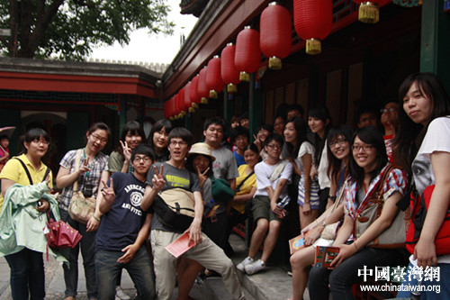 两岸学生在湖广会馆中合影留念(中国台湾网 刘承思 摄)