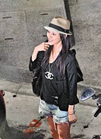 范玮琪(范范)站在路边等好友下车,5月才刚成为人妻的她神情愉悦,喜气显在脸上。图片来自网络