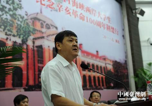 武汉大学校长李晓红讲话(湖北省台办 陆胜 摄)