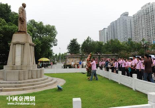 两岸学子共同向中山先生铜像敬献花篮(湖北省台办 陆胜 摄)