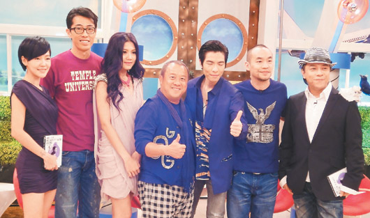 曾志伟(左四)上“康熙来了”节目,宣传《杀手欧阳盆栽》。图片来源:台湾《联合报》