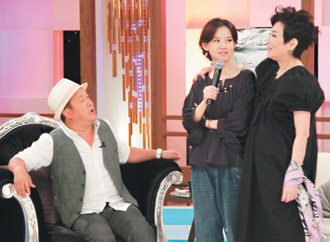 曾宝仪(中)和父亲曾志伟(左)上张小燕的通告,却避开小S节目。图片来源:台湾《联合报》
