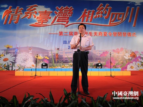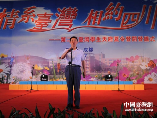 台湾民意代表、台湾学生天府夏令营总领队许舒博在开营仪式上致辞。图片来源: 四川省台办