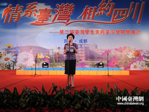 四川省人民政府副省长黄彦蓉在开营仪式上致辞。图片来源:四川省台办