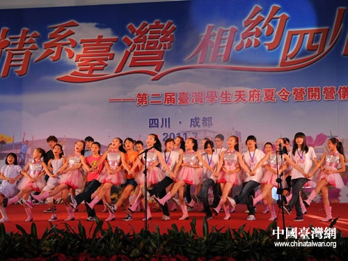 川台两地学生在开营仪式上共同表演了精彩的文艺节目。图片来源:四川省台办