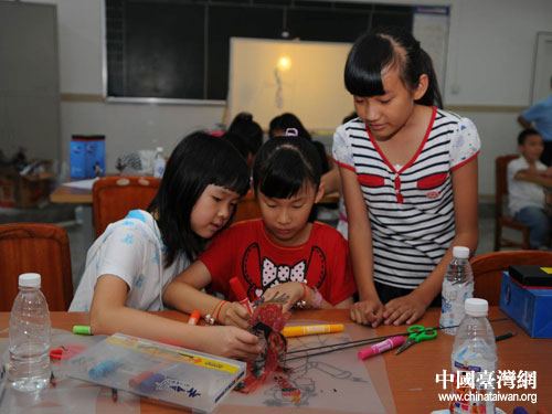 川台两地学生共同制作皮影画。图片来源: 四川省台办