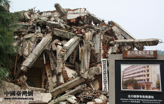 北川烟草专卖局遗址,原本6层高的建筑在地震之后变成了一片废墟。(中国台湾网 赵辉 摄)