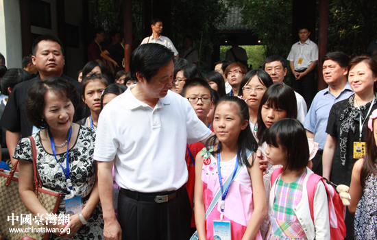 刘奇葆书记与台湾师生共同参观杜甫草堂。(中国台湾网 赵辉 摄)