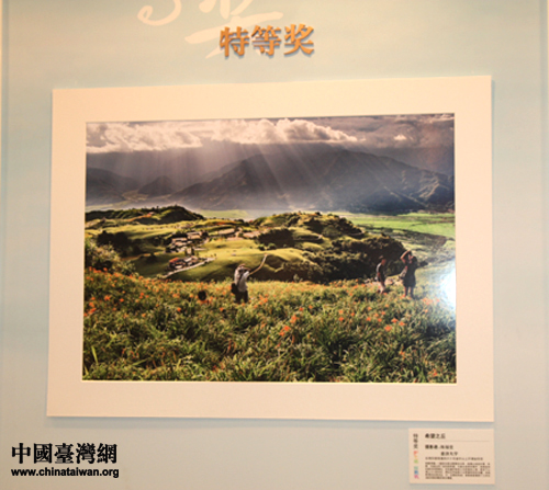 台湾慈济大学的陈福堂同学凭借这幅《希望之丘》获得了特等奖。(中国台湾网 杨永青 摄)