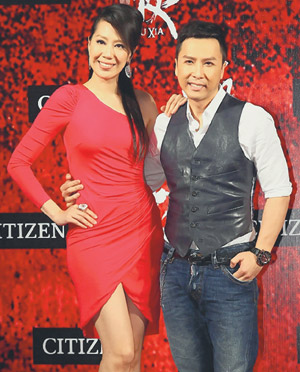 甄子丹(右)带老婆汪诗诗(左)一起走红地毯。图片来源:台湾《联合报》