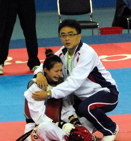 去年广州亚运会跆拳道项目开赛首日,中华台北代表团选手杨淑君,在比赛中被发现电子袜套多贴了两枚电子感应芯片,而被裁定“违规失败”,无法继续参加比赛。(中国台湾网 刘海伟)