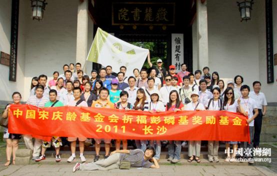 参加夏令营的台生们在岳麓书院门前合影留念。(中国台湾网 高斯斯 摄)