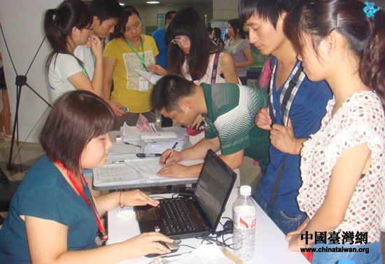 赛事工作窗口前,参赛团队履行各项手续。(中国台湾网 王思羽 摄)
