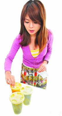 据报道,上月中有民众投诉,指在台北市一家知名果汁店购买每杯80元新台币的现榨柳橙汁,带回家20分钟后准备饮用时,赫然发现杯盖竟出现4个半圆形大洞,塑胶屑漂浮在果汁上,惊呼:“这柳橙汁也太恐怖了!”
