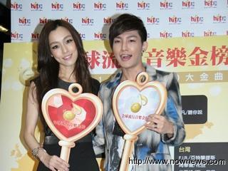 范范、炎亚纶揭晓“2011全球流行音乐金榜”上半年度20大金曲名单。图片来源:台湾媒体