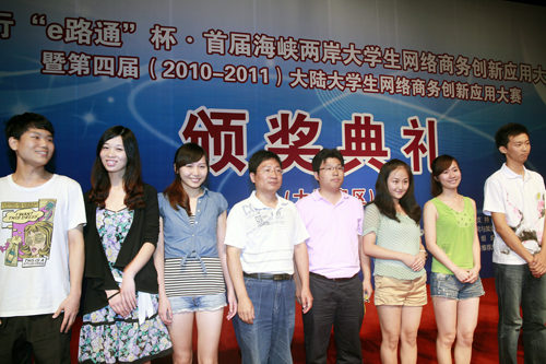 中国台湾网7月28日北京消息 经过紧张的初赛、复赛和分赛区决赛,由中国互联网协会和中国台湾网共同主办,中国建设银行主协办的建行“e路通”杯首届海峡两岸大学生网络商务创新应用大赛暨第四届大陆大学生网络商务创新应用大赛大陆赛区总决赛颁奖典礼今天上午在北京交通大学隆重举行,来自西安邮电学院的“随风E起冲”团队凭借完善的方案、充分的实践成果、出色的现场表现一路过关斩将勇夺本科组桂冠!本网记者在颁奖现场对“随风E起冲”团队进行了采访。