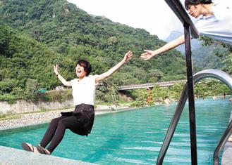 杨谨华拍落水戏惊声尖叫。图片来源:台湾《联合报》