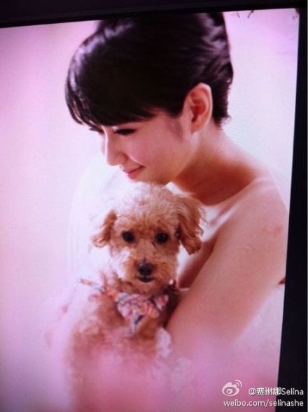 中国台湾网8月12日消息 据台湾《中国时报》报道,日前Selina拍戏遭灼伤,至今仍在复健,今天凌晨3时许,她在微博公布婚纱照,照片中的她抱着爱犬Pinky,侧着脸,盘起黑短发,低着头的她看来甜蜜幸福。