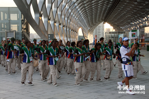 南非运动员跳起传统民族舞蹈。(中国台湾网 于斯文 摄)