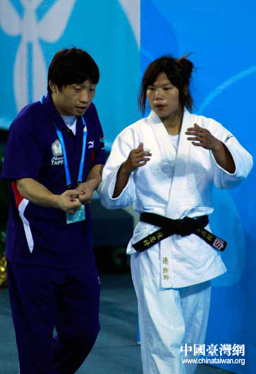 陈思妤比赛后与教练交谈。(中国台湾网 刘海伟 摄)