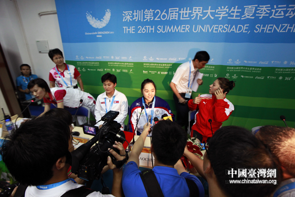 赛后新闻发布会,金牌得主何筱珺最受记者关注。(中国台湾网 董宪超 摄)