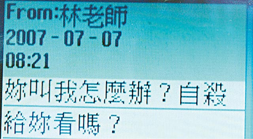 林定玉传短信给女方“我怎么办?自杀给你看吗?”图片来源:台湾媒体
