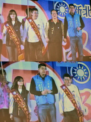 板检公布搜证录像带,当时连胜文原站右侧(上图),与陈鸿源(下图右)互换位置后遭枪击。图片来源:台湾“今日新闻网”