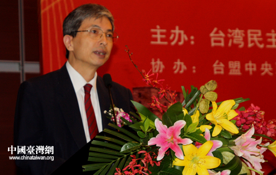 北京市政协副主席,台盟北京市委主委蔡国雄在开幕式上致词。(中国台湾网 高斯斯 摄)