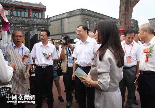与会领导和嘉宾参观“发现原乡之美”台湾五乡联展。(中国台湾网 郭庆娜 摄)
