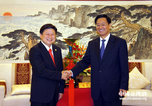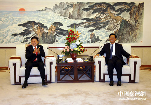 中共山东省委副书记、山东省政协主席刘伟会见台湾花莲县县长傅崐萁。图片来源:山东省台办