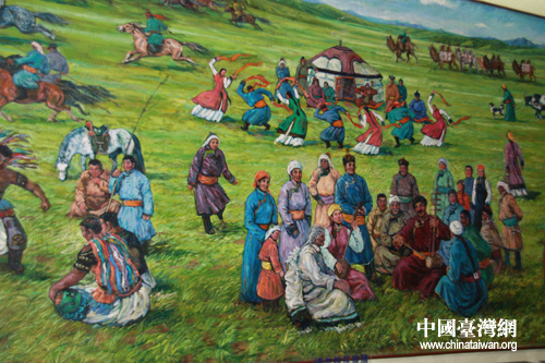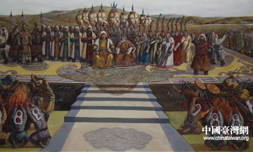 大型油画《成吉思汗建立蒙古帝国盛典》(中国台湾网 陈宁 摄)