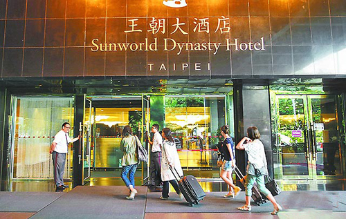台媒直击发现,5星级的王朝大酒店成了卖淫据点。图为房客在酒店外进出。图片来源:台湾媒体