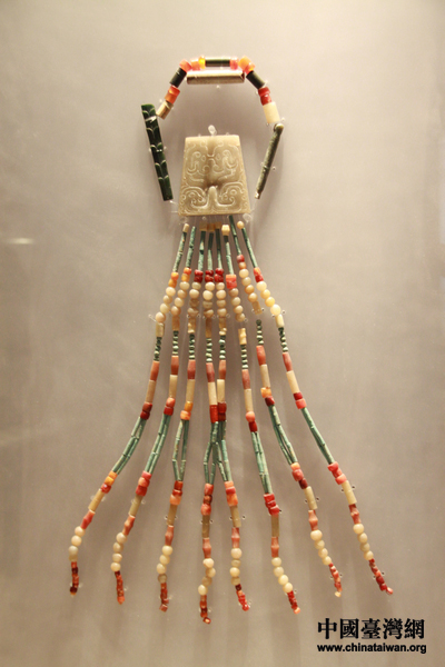 平顶山市应国墓出土的西周时期(公元前1046-前771)的组合玉佩。(中国台湾网 芮益芳 摄)