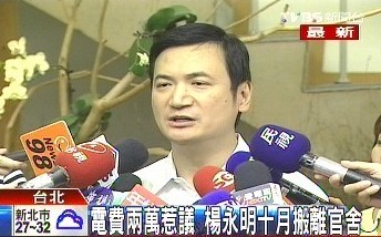 据台媒了解,搬家之后,杨永明将自行负担租屋费用,未来也不再申请使用公务人员宿舍。杨永明指出,宿舍电费问题显示新闻主管部门在宿舍维护、管理需通盘规划,为了不影响改善作业,也不使公家电费产生多于支出,才决定搬家,且仍会持续改善公务人员宿舍老旧耗电设备。(中国台湾网 吴斌)