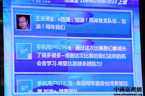大赛现场,两岸大学生通过腾讯微博进行热烈的互动交流。(中国台湾网 芮益芳 摄)