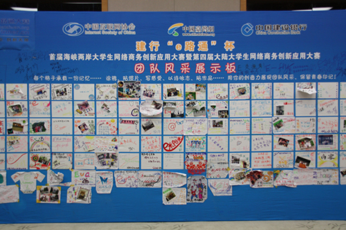 活动现场的团队风采展示板,展现了两岸大学生在此次活动中的精彩历程。(中国台湾网 芮益芳 摄)
