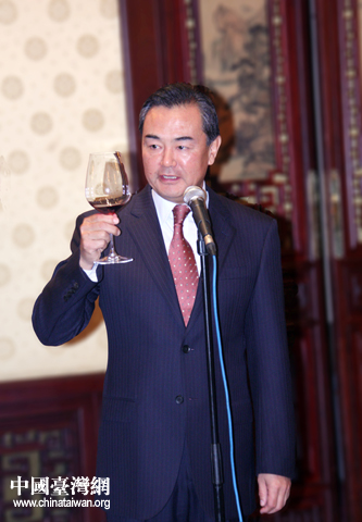 王毅在致辞时表示,胡锦涛总书记在纪念辛亥革命一百周年大会上的重要讲话,全面阐述了辛亥革命的历史地位和重大意义。胡总书记还专门就两岸关系发表了重要意见,强调携手推进两岸关系和平发展,同心实现中华民族伟大复兴,应是两岸同胞共同追求的目标。