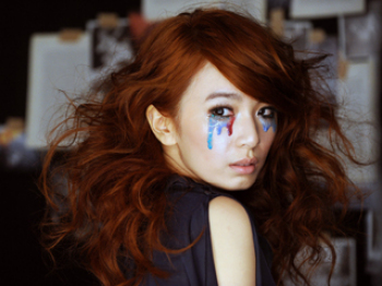 田馥甄在MV中,扮演囚禁天使,彩色眼泪营造出诡异气氛。(图片来源于网络)