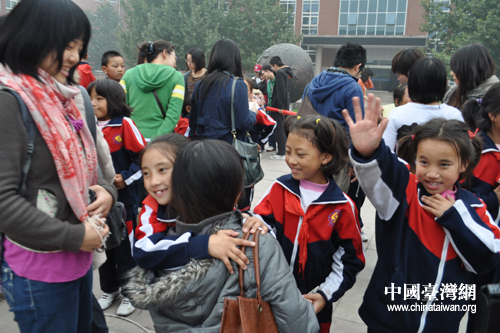 图为玉树孩子与北大学子们依依送别。 (宋庆龄基金会志愿者 许庆庆 摄)