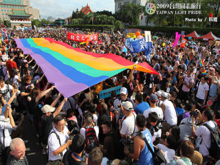 亚洲规模最大的同性恋游行,29日在台北凯达格兰大道上盛大登场,许多台湾民众也一同参加。 (图片来源于台湾媒体)