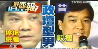 政坛帅哥黄义交跑摊跌倒,脸上瘀青数块。(图片来自台湾媒体)