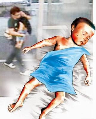 警方到达后发现男童四肢、脸部都有大片瘀伤,鼻梁断裂、左脚大拇指及手指指甲掀起,全身有近30处遭烟烫的伤疤,怀疑惨遭虐死,由于男童没有致命外伤,有可能是胸腔或颅内出血致死,确切死因将择日解剖厘清。