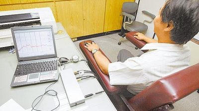 警方曾示范测谎,受测者若说谎,将反应在计算机屏幕上。(图片来自网络)